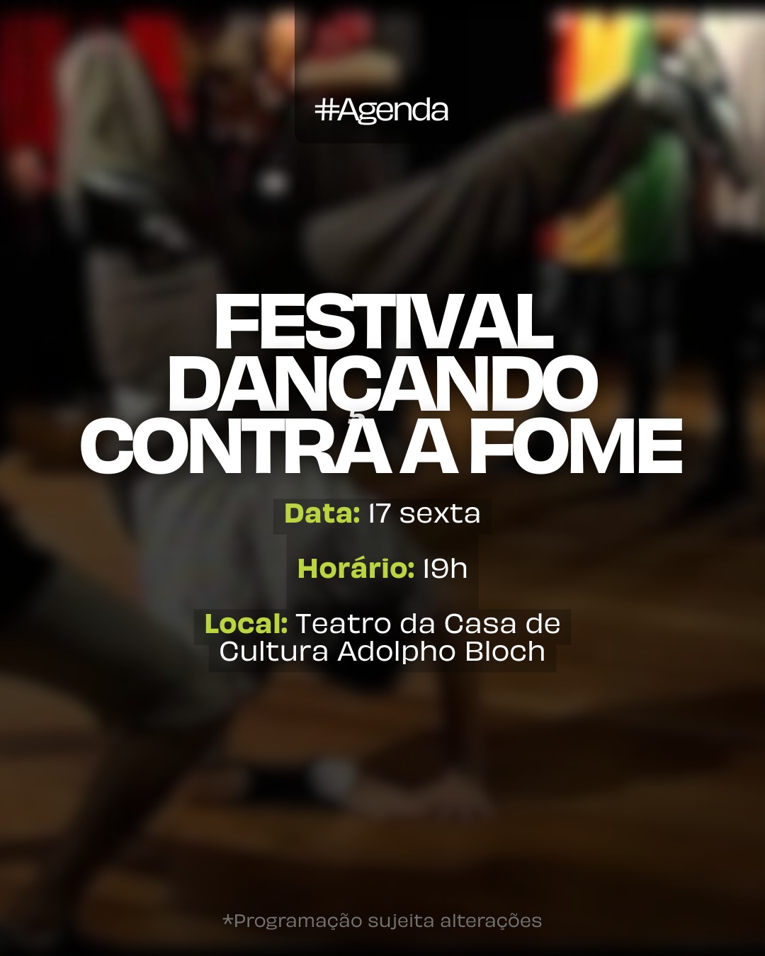 Festival Dançando Contra a Fome 17 de outubro, ás 18h Casa de Cultura Adolpho Bloch
