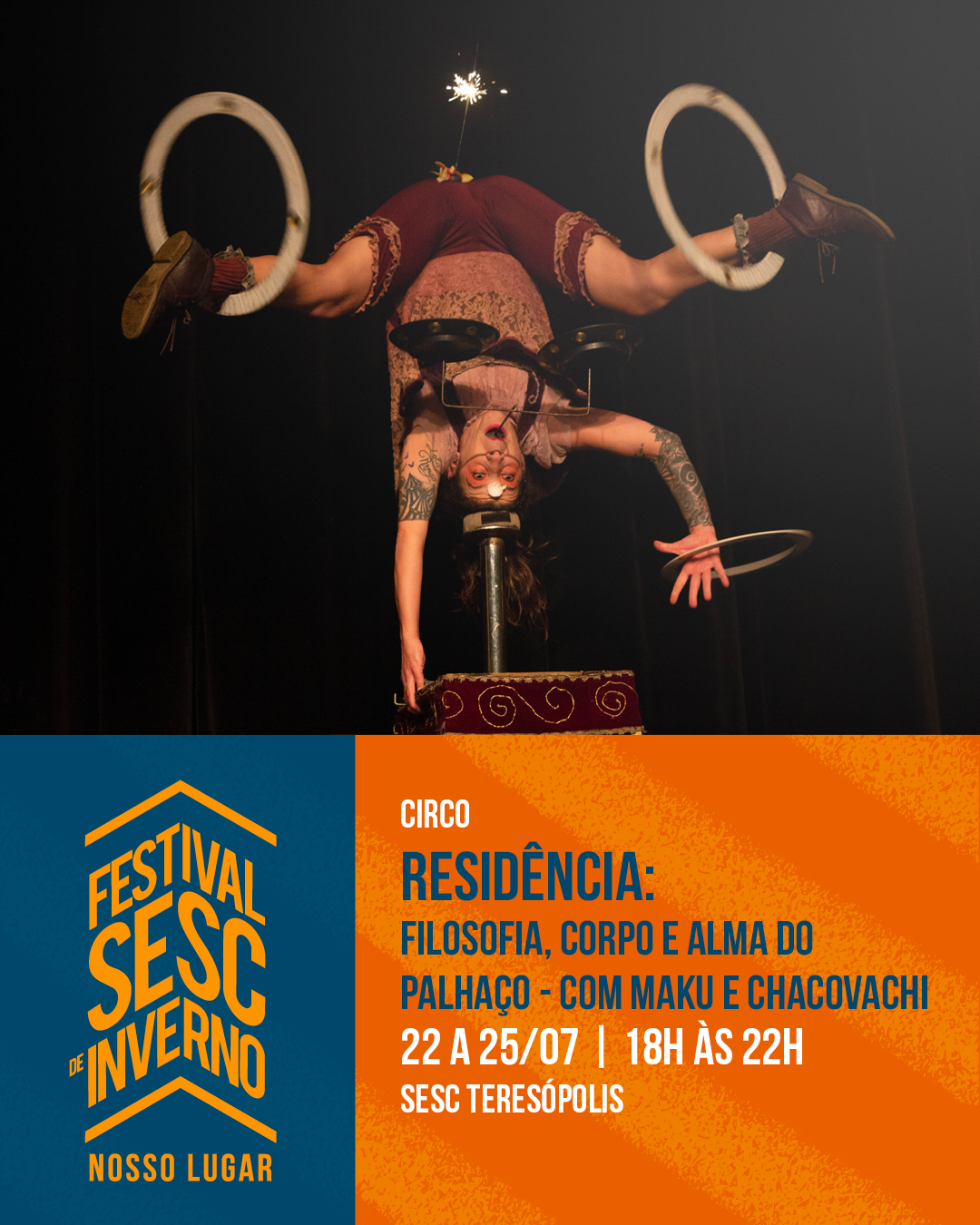 Residência: Filosofia, Corpo e Alma do Palhaço – com Maku e Chacovachi 22 a 25 de Julho, das 18h às 22h Sesc Teresópolis
